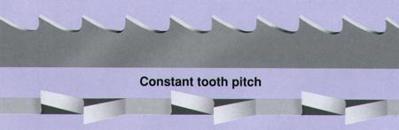 標準的齒組形式可以被普遍地用在切割厚度比5mm大的鋼材、鑄鐵、以及堅硬的非鐵金屬。其鋸齒的排列順序為左/右/直線(如圖1)。變化齒形中,在每一齒節中的鋸齒是不規則的,每個齒節之間的鋸齒呈週期性的左/右排列(如圖2)。