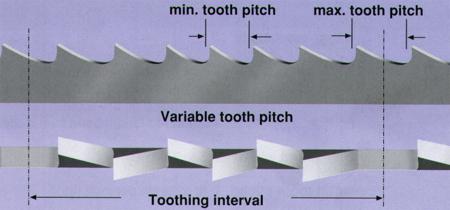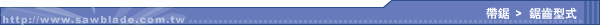 帶鋸的齒形是根據斜角相對於齒根部位的角度來區分。 |